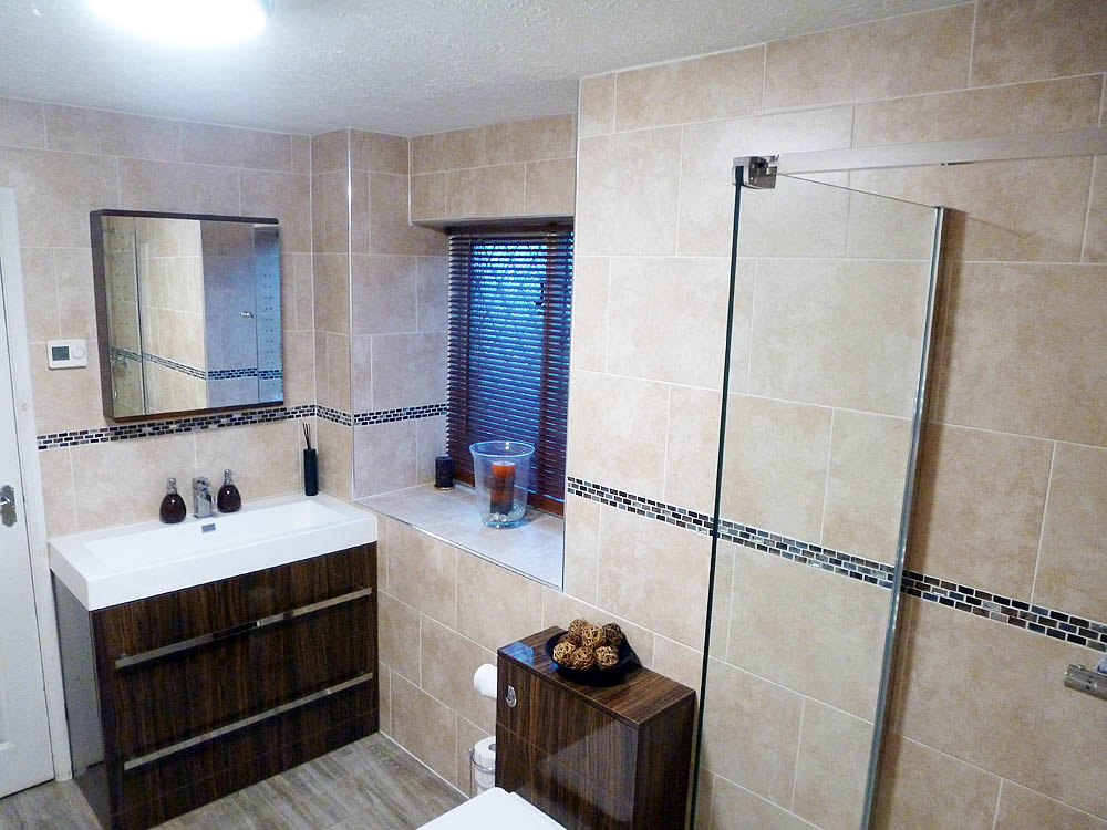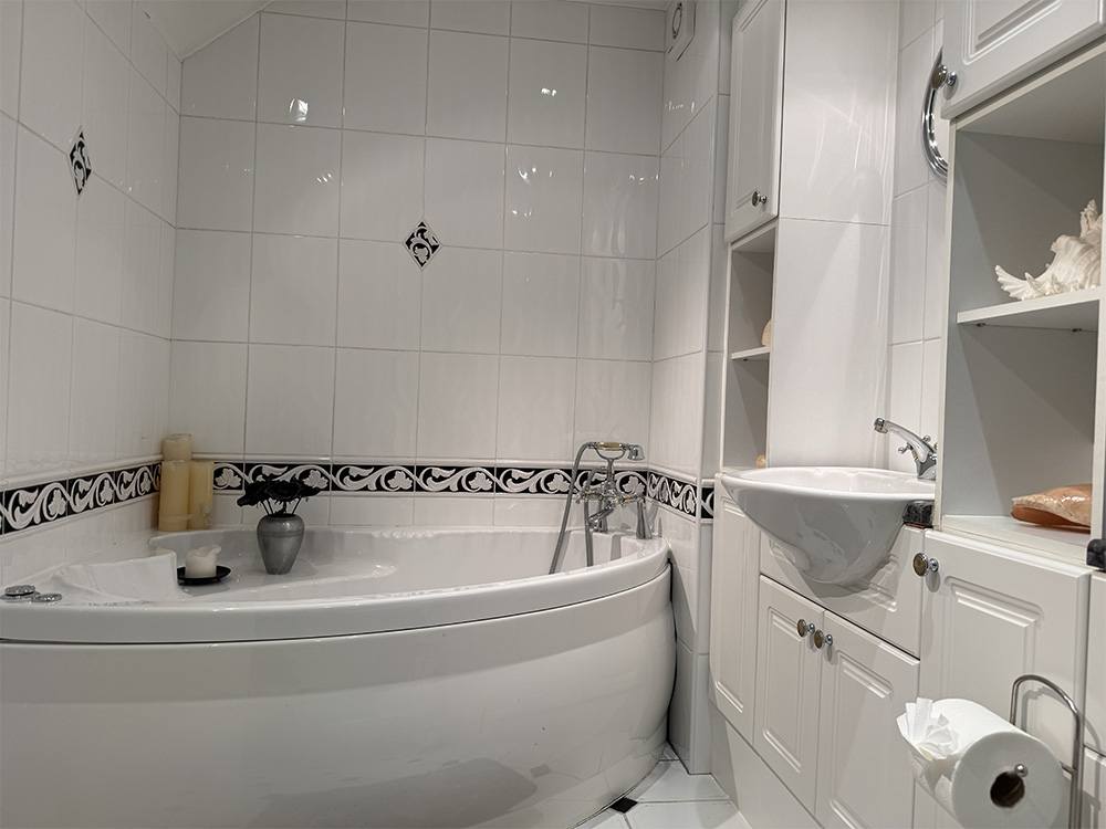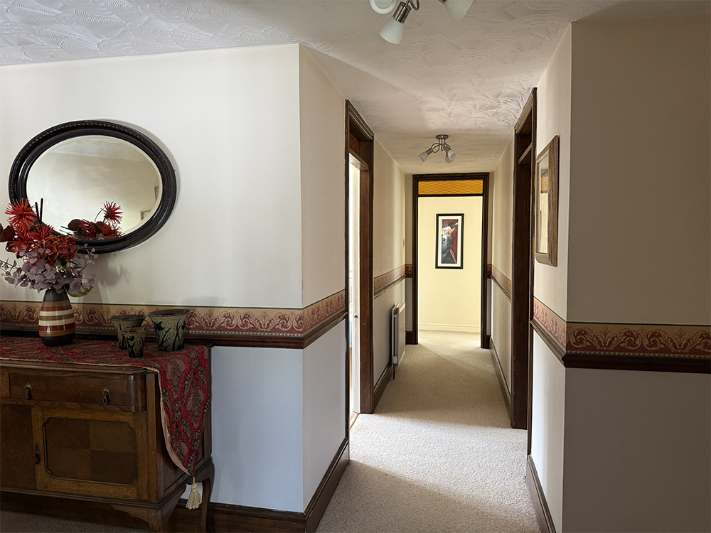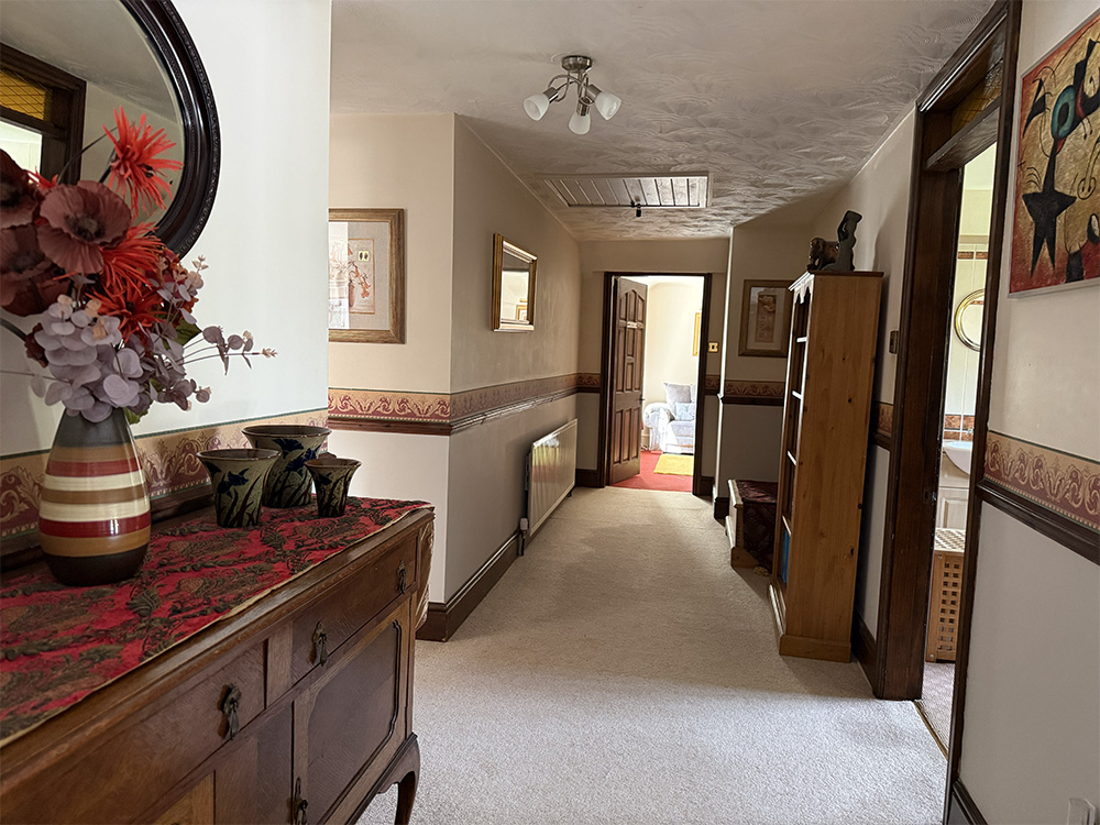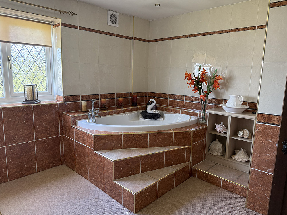 On the first floor is a very large bathroom with corner bath, two vanity units, toilet and separate power shower.