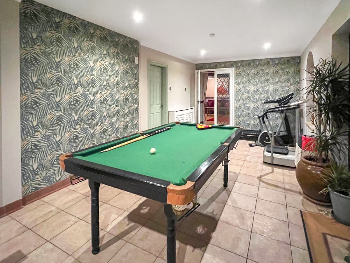 The Relaxation Room has a fitness suite, games area (pool table) and comfortable seating. A changing room, shower and toilet facilities are also accessed from the Relaxation Room as is the shared heated indoor swimming pool.