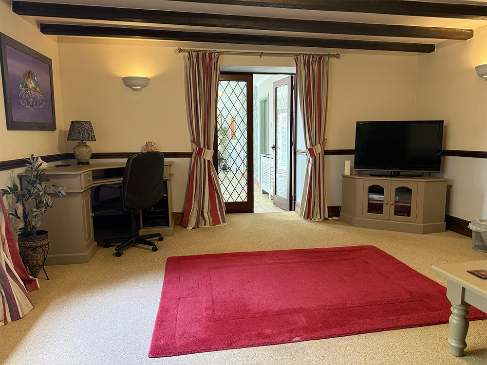 A second sitting room is accessed from a quiet corridor off the main living area. This room has a sofa, cuddle chair and a sofa bed for those guests who aren’t able to manage the stairs. It also gives access to the Relaxation Room, but can be closed off as the Relaxation Room also has a separate entrance from the courtyard.