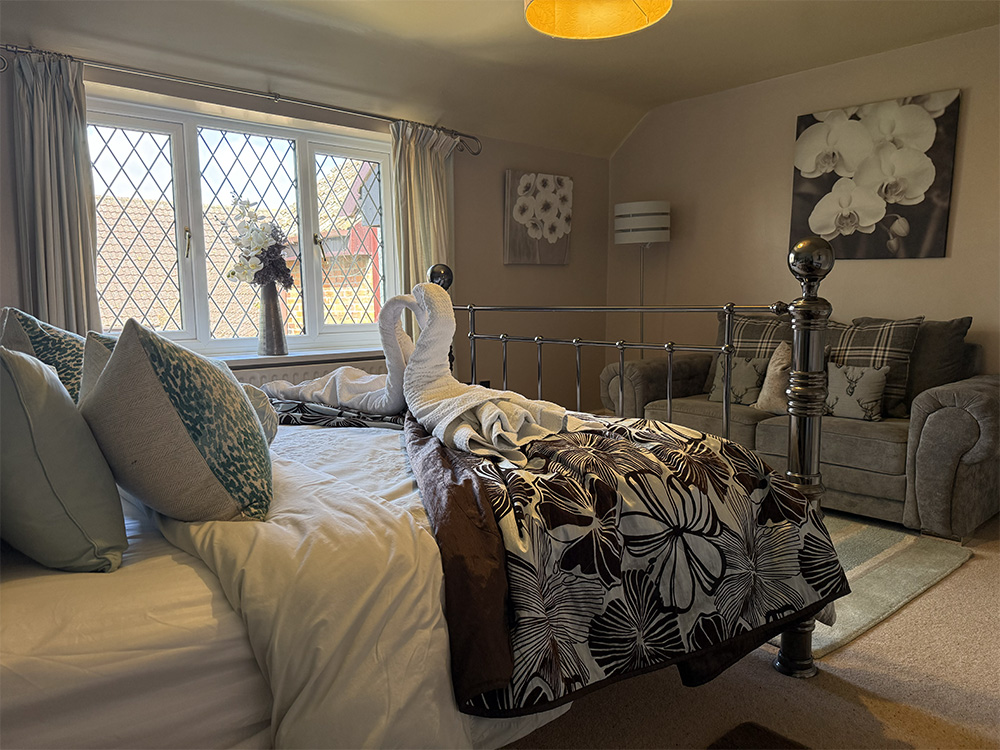 With its King size bed (and additional sofa bed), en suite bathroom with spa bath and corner shower, His and Hers walk-in wardrobes and make-up area it is a beautiful room designed to be just that little be extra special.