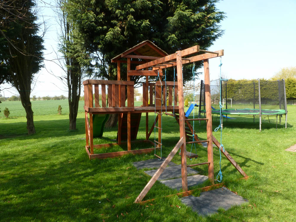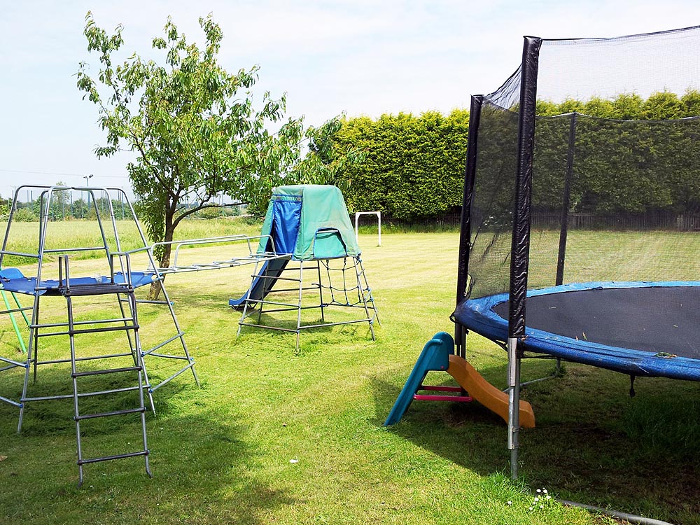 Within the grounds is a children’s play area. It is equipped with swings, a climbing frame, a wooden play tower, a slide and a netted trampoline. There is a large grassed ball games area and football nets.